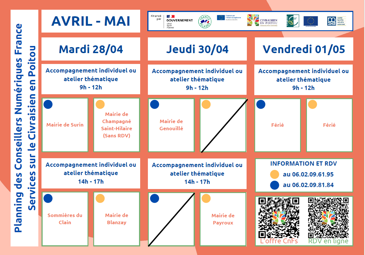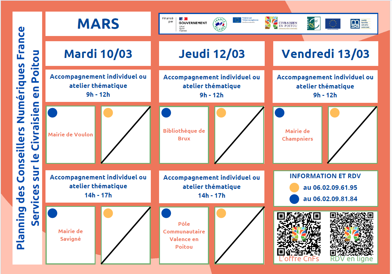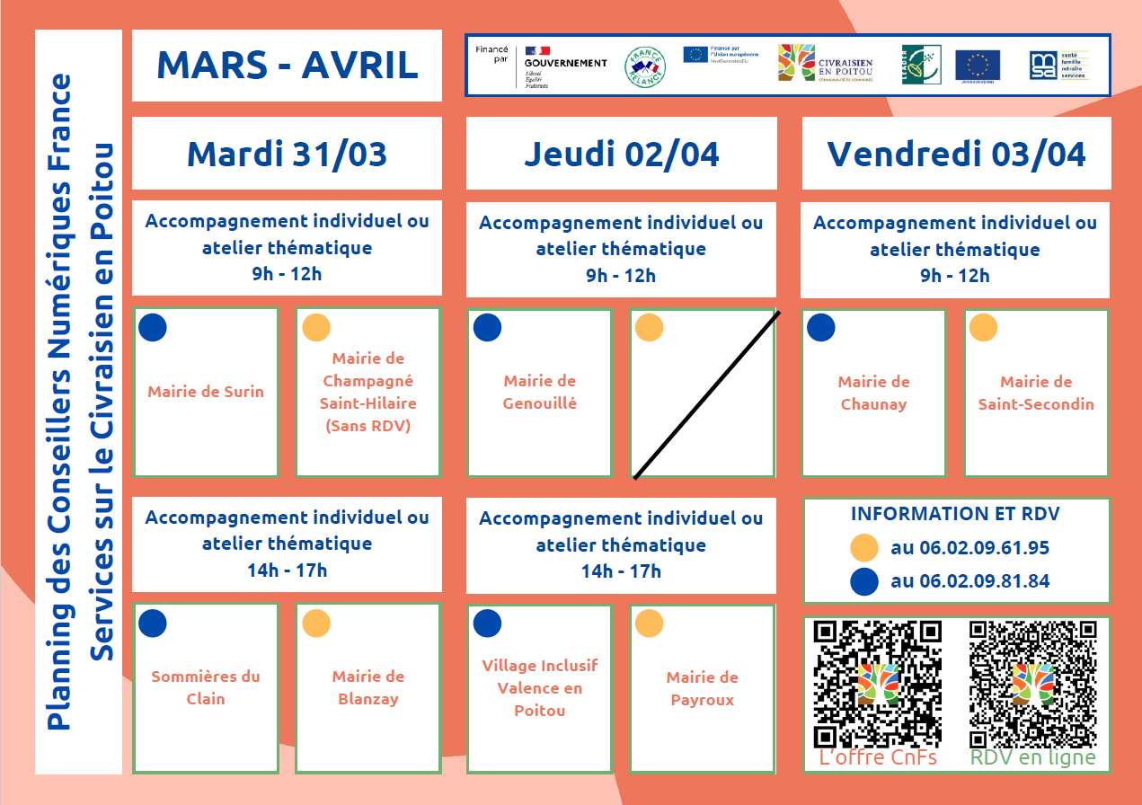 Conseiller Numérique à Genouillé – Prochaine séance les Jeudis 5 mars,19 mars, 2 avril, 16 avril de 9h à 12h