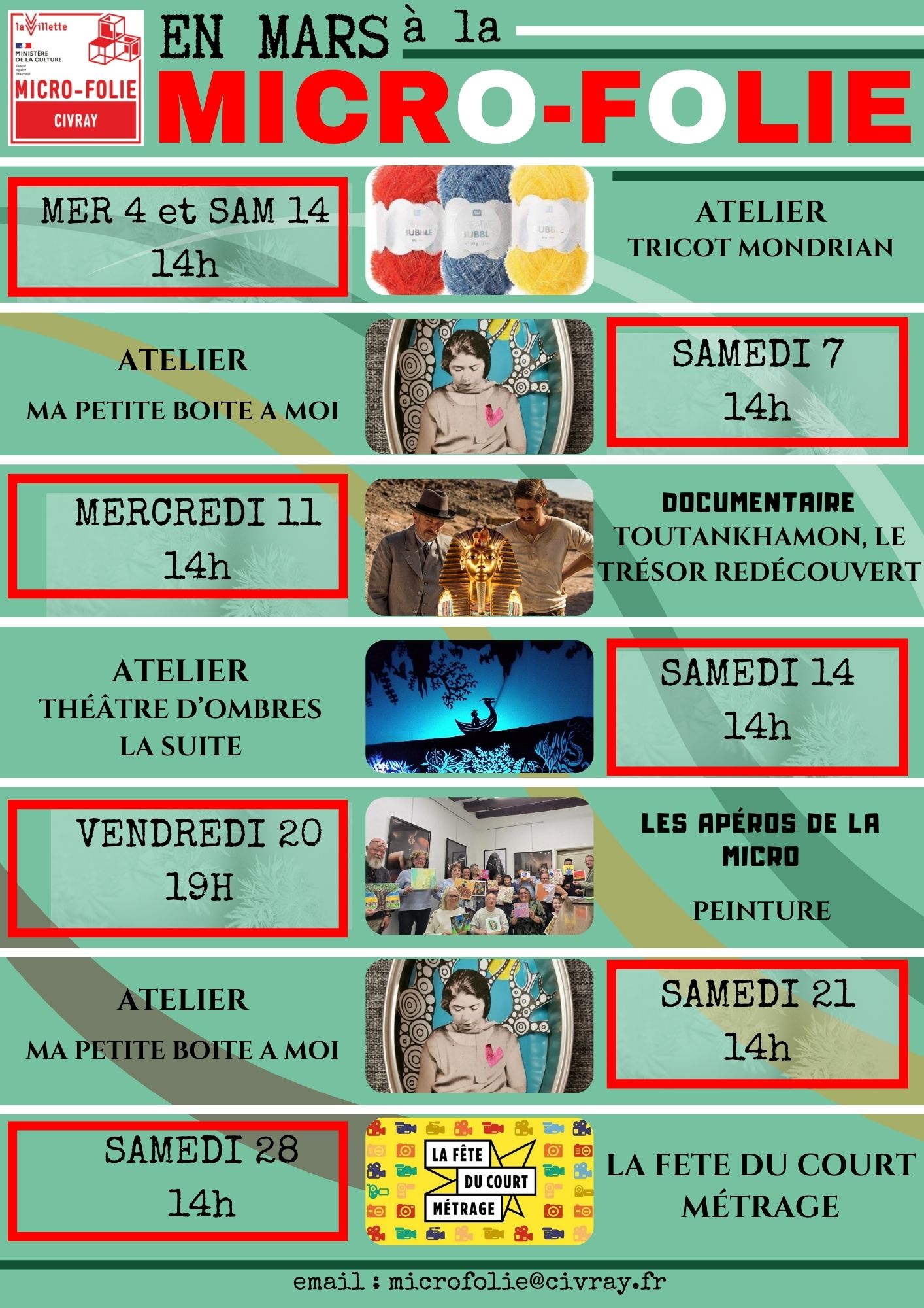 MICROFOLIES CIVRAY – Voir le programme Le mardi 26 Août 2025 à 12h10 PM Les categories associées : Acteurs culturelsNous contacterDémarches administrativesAssociationsSolidaritéLocation sallesPatrimoine remarquableNuméros d’urgenceJournal municipalPartager :