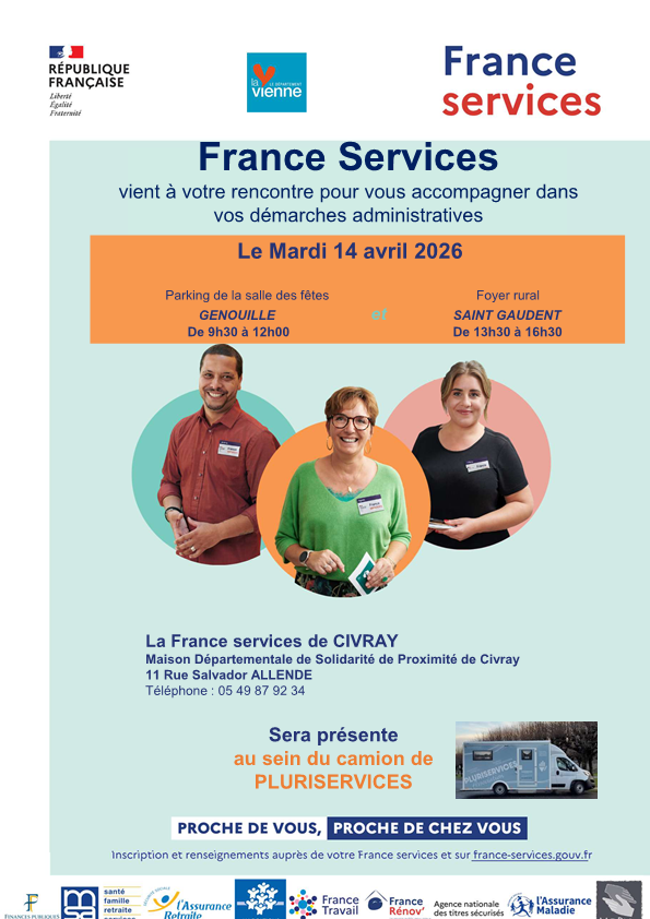 FRANCE SERVICES sera présent à GENOUILLÉ -Mardi 14 avril -9h30-12h00 Le mercredi 17 Sep 2025 à 14h35 PM Les categories associées : SolidaritéNous contacterDémarches administrativesAssociationsSolidaritéLocation sallesPatrimoine remarquableNuméros d’urgenceJournal municipalPartager :