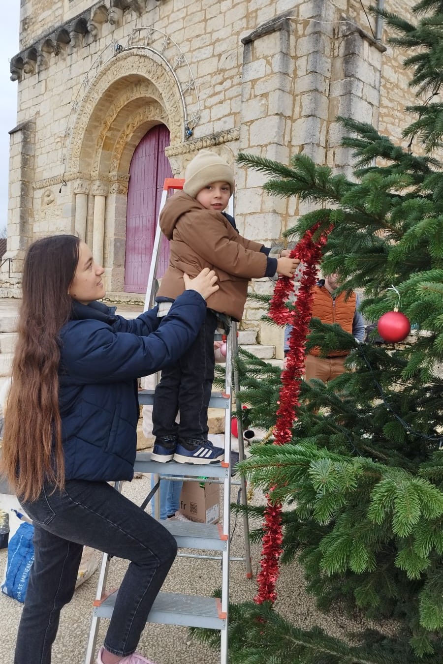 Ce dimanche 7 décembre 2025 vers 15 heures, des enfants de Genouillé se sont réunis pour décorer le grand sapin de Noël installé sur la place près de l’église. Dans une ambiance joyeuse et conviviale, ils ont accroché guirlandes, boules colorées .