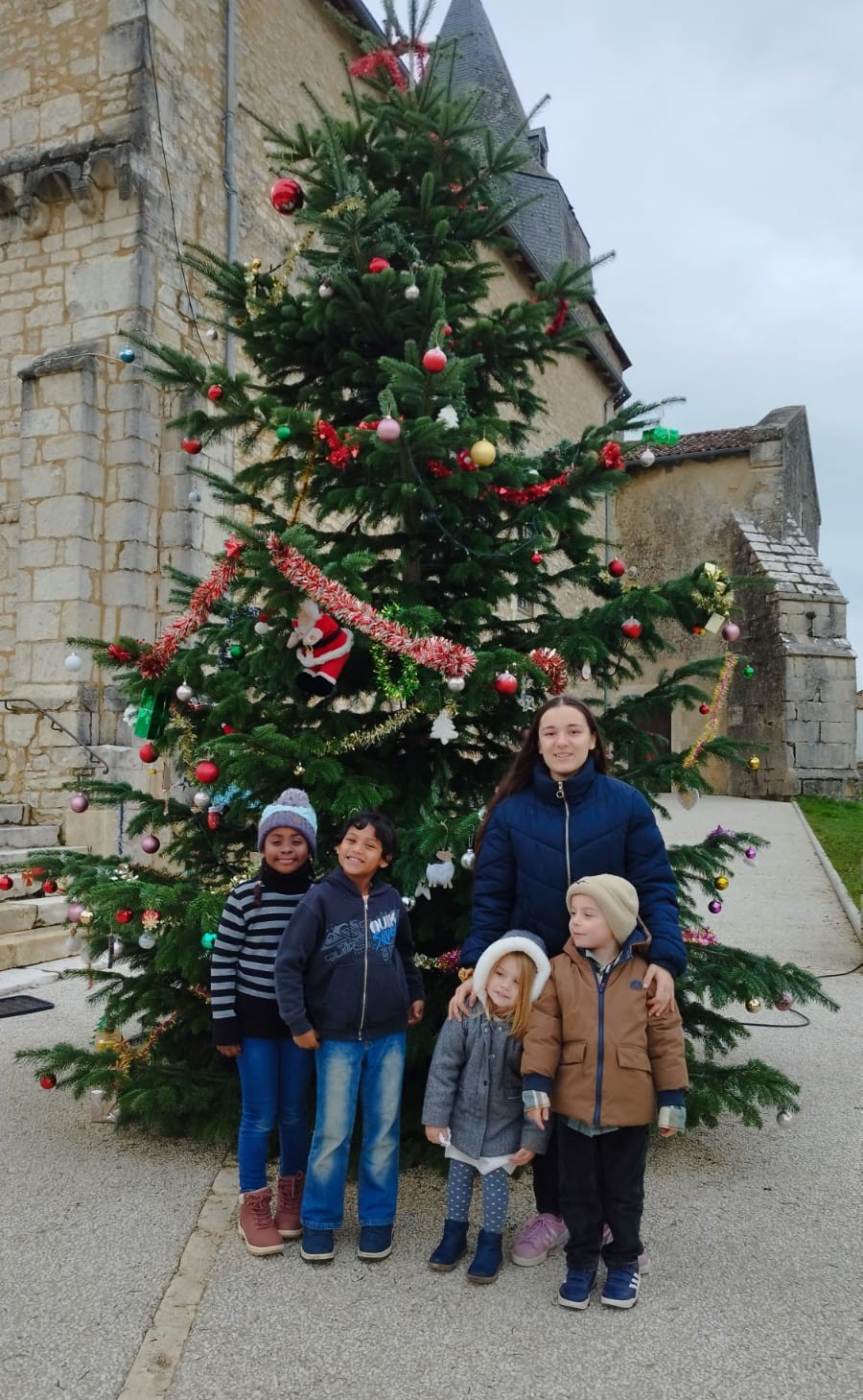 Ce dimanche 7 décembre 2025 vers 15 heures, des enfants de Genouillé se sont réunis pour décorer le grand sapin de Noël installé sur la place près de l’église. Dans une ambiance joyeuse et conviviale, ils ont accroché guirlandes, boules colorées .