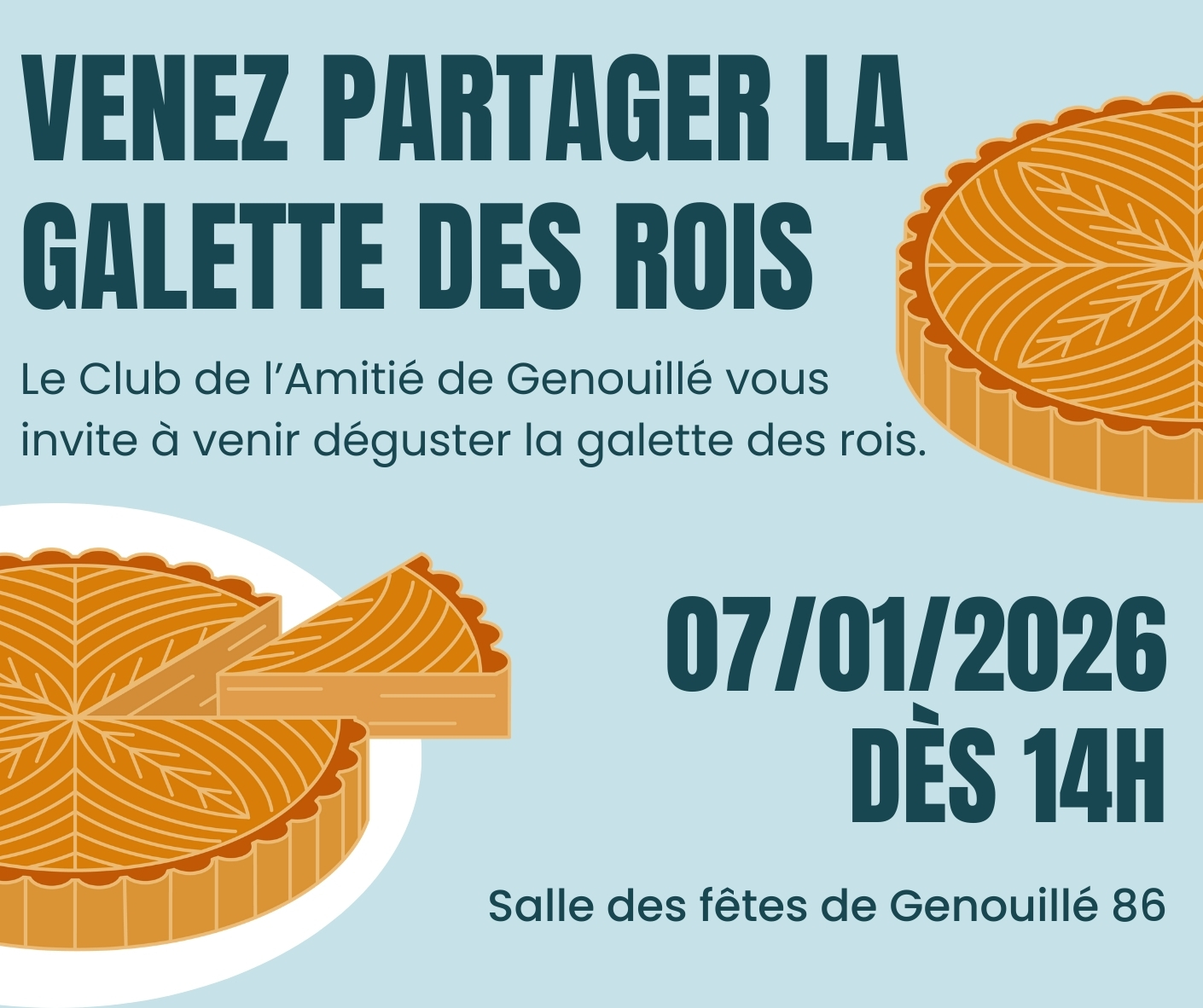 Le Club de l’Amitié est heureux d’inviter les habitants de la commune à sa galette des rois 🥧