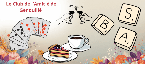 Club de l’Amitié de Genouillé- Prochain rendez-vous Mercredi 4 Mars à la salle des fêtes à14h.