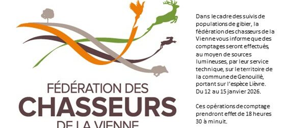Vous êtes là : Accueil \ Non classé\Opérations de comptage du 12 au 15 janvier 2026 sur Genouillé sur espèce lièvre par la Fédération des chasseurs de la Vienne