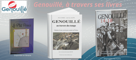 A travers ces trois livres, Genouillé raconte son histoire et son identité: un regard sur l’évolution au fil des siècles, le vécu de la commune pendant la Première Guerre Mondiale, et la richesse de son patois avec » Le P’tit Prince » traduit en parler local.